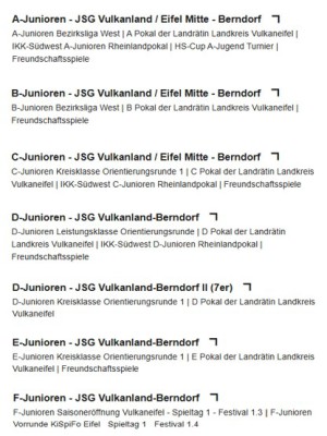 Unsere Jugendmannschaften in der kompakten Übersicht: